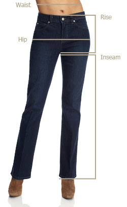 Rise - This will be how far the jeans sit on the body, a low rise will sit directly on the hips, a high rise will sit directly on the waist line, where as a mid rise will hit between the two. This measurement will vary given the size and style of the jean. To find the rise of a jean measure from the crotch to the waistband.
